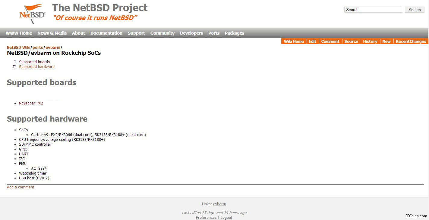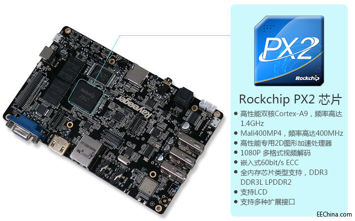 芯客网推出的Rayeager PX2开发板采用瑞芯微Rockchip PX2芯片配置了双核Cortex A9,频率高达1.4GHz。四核Mali-400MP4 GPU,频率高达400MHz。Of course it runs NetBSD,NetBSD设计简洁,代码规范,拥有众多先进特性,使得它在业界和学术界广受好评。由于简洁的设计和先进的特征,使得它在生产和研究方面,都有卓越的表现,而且它也有受使用者支持的完整的源代码。
