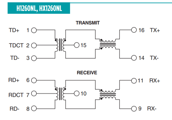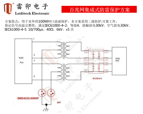 我们参考上海雷卯的关于百兆网络的过压保护设计如下:配合HX1260NL设计。