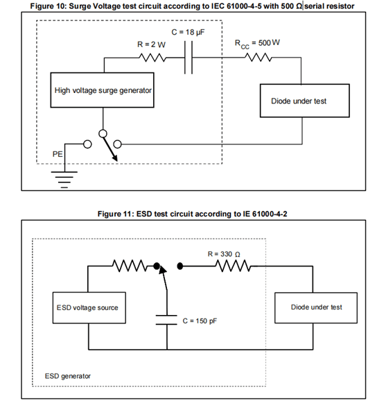 从上图看出以上保护传感器各需要3颗ESD二极管保护,且工作电压为24V,由于考虑到电压的波动建议选取36V保护的ESD二极管,上海雷卯提供SOT-23的双路ESD SM36 ,SOD-323的SD36,DFN1006的SDA3611DN,可以满足以上器件的直接替代。且浪涌保护能力比ST的2A大很多,满足工业控制的测试需求。