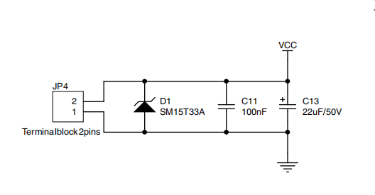 ST的L7986A的DC-DC芯片耐压值为38V,正常工作电压为24V,所以此处可以选择小体积大功率的,SMB15J30CA,SMB封装,可以满足浪涌测试需求。发生浪涌时可以保护后端的IC芯片。