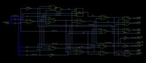 规划完成后,就到了画出设计蓝图。首先要进行逻辑合成:把确定正确性的HDL code放入EDA tool(电子设计自动化工具)里面,转化成逻辑电路(如下图)。然后确定这里的逻辑闸设计图是不是符合规格,如果不符合就修改直至正确为止。