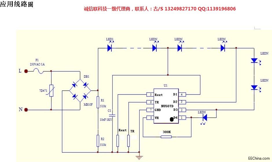 l NU507D是一簡單的高壓定電流元件,在各種 LED照明產品的應用上非常容易使用, NU507D其具有絕佳的負載與電源調變率和極小輸出電流誤差,能使 LED 的工作電流以及温度穩定限制在設定範圍內,大幅增長LED使用壽命。