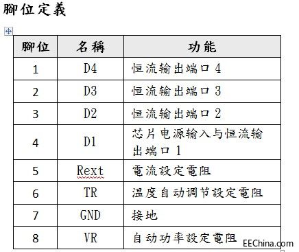l 具有輸入功率自动调节的功能,当輸入电压过高时,将降低輸出电流,电流降低的幅度通过外置电阻VR设置,以此保证輸入功率不随輸入電壓变化。