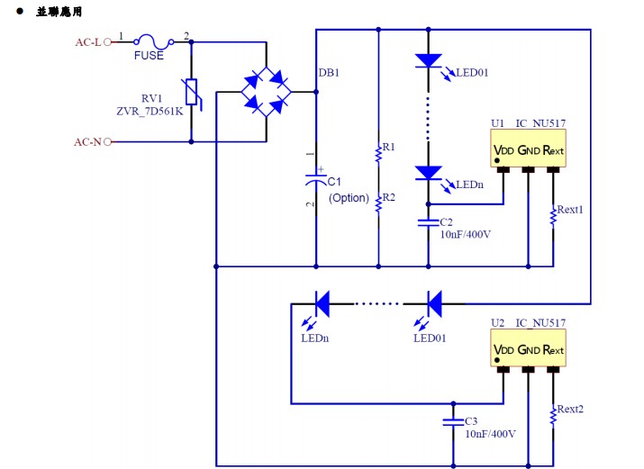 NU517 是一簡單的高壓定電流元件,在各種 LED照
