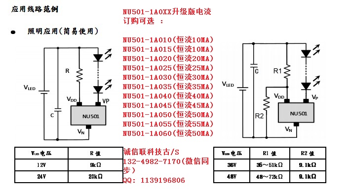 线性定电流恒流ICNU501-1A0XX系列芯片特性