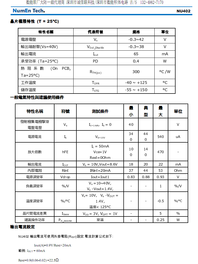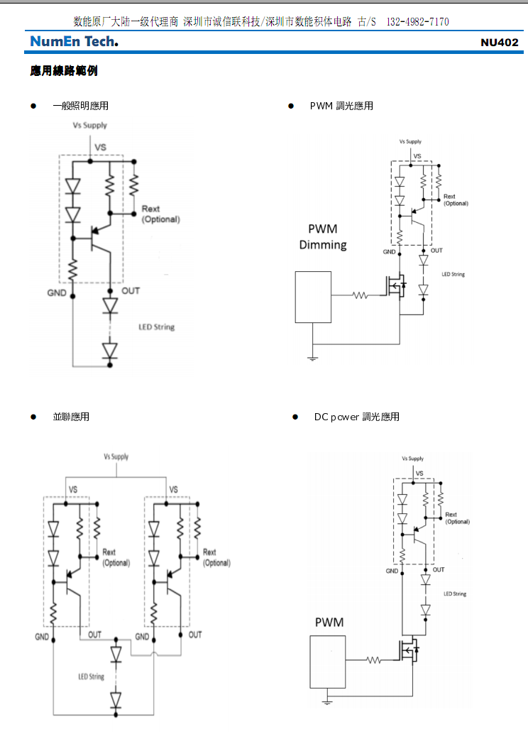 5-48V低压LED灯条应用IC /NU402(20-65mA可外挂电阻设定电流)