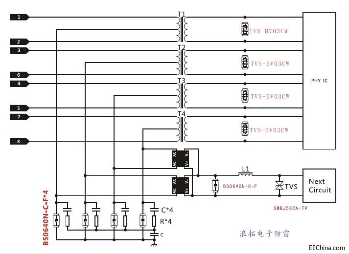 浪拓电子是国内电路保护领域的领先企业,日前针对Ethernet接口电容要求低,高温漏电要求小的特殊应用需求,宣布推出了TVS-BV系列TVS阵列产品,旨在保护Ethernet接口免受静电放电(ESD)、电气快速瞬变(EFT)和雷击感应浪涌造成的损坏。