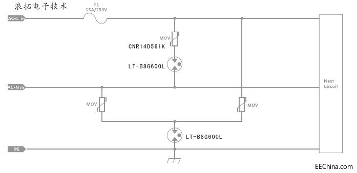 常用的气体放电管可以泄放10KA ( 8/20μs)以下的瞬态电流。气体放电管的反应时间是指从外加电压超过击穿电压到产生击穿现象的时间,气体放电管一般在微秒数量级。气体放电管具有多种不同规格的直流击穿电压,其值取决于气体的种类和电极间的距离等因素。