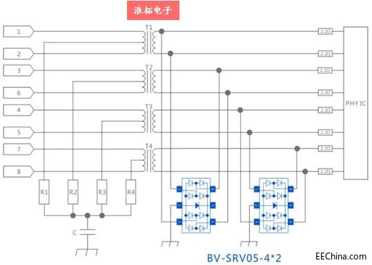 瞬态电压抑制器(Transient Voltage Suppressor)简称TVS,是一种二端高效能保护器件。当TVS二极管的两极受到反向瞬态高能量冲击时,能以10-12秒量级的速度从高阻变为低阻,使保护端的电压箝位于一个预期范围,从而有效地保护后级的精密元器件,免受各种EMI及浪涌的损伤。