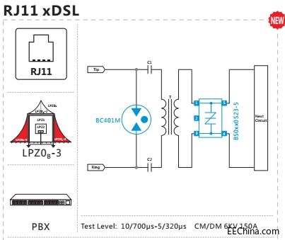 5)对于数据接口电路的保护,还必须注意选取具有合适电容C的TVS器件。
