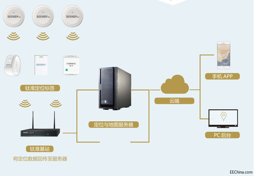 寻息电子多年来也在试图于定位精度和系统成本之间寻求平衡,其独创的“钛准人员及物品定位系统”目前可实现1-5米的定位精度,该定位系统结合了“LPWAN 通信技术+蓝牙定位技术”,首创“一网多用”,可同时支持手机APP定位、被动监控定位的方案,基站覆盖面积广、部署实施快、成本仅为传统方案的20%,不需要在建筑内大量布线和打孔,是业界唯一无须“走线打眼”的被动定位方案,目前已在多家大型医院和养老院进行部署实施,特别适合对环境要求极高的场景。比如医院、机场往往是不允许在现场进行噪音施工,这时“钛准定位方案”就成为了最适合的定位方案。
