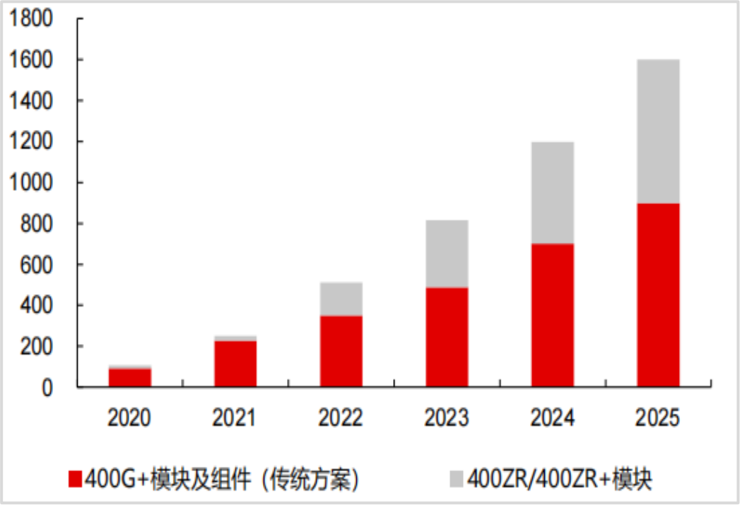 图1:400G+组件及模块出货量(千只)