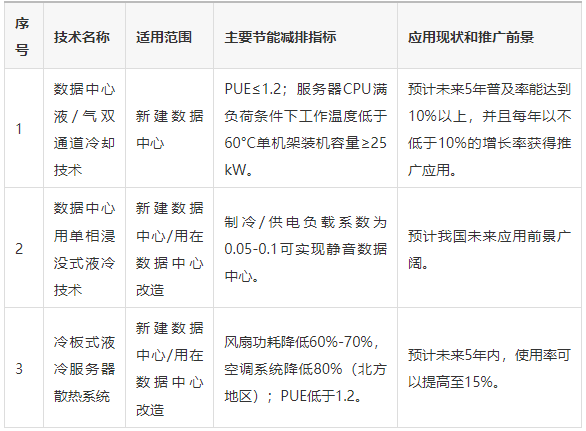 液冷技术多适用于高密度高功率的数据中心,数据中心液冷技术现阶段国内外都处于探索阶段。随着英特尔、华为、易飞扬等国内外企业逐渐深入探索液冷技术,预计数据中心液冷技术的发展将进一步加速,表1介绍了工信部发布的目前我国绿色数据中心先进适用液冷技术的情况。在双碳政策的推动下,液冷技术具有很大发展可能性,并驱动数据中心绿色低碳化加速向前发展。