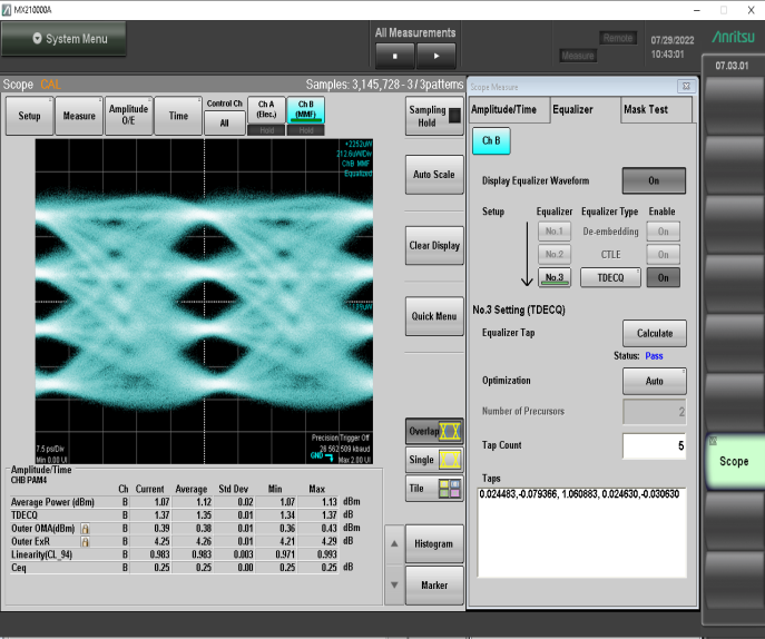 新上市的400G QSFP-DD SR8/AOC基于博通8X50G PAM4 7nm DSP。光口类型为MPO16(APC),测试常温和高温眼图TDECQ<2.0db,三温最大功耗为8.3W,OMA灵敏度在-8dbm左右。