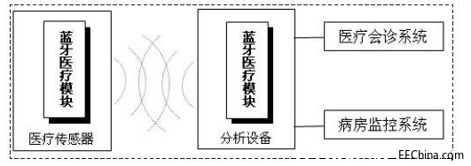 蓝牙系统在医疗领域应用的主要模式图如图2所示: