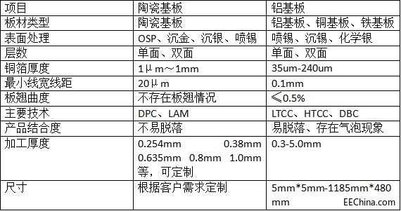 三、陶瓷基板和铝基板的参数对比