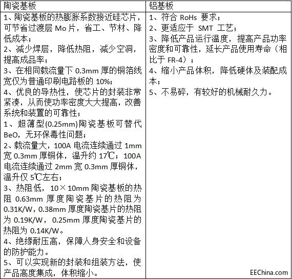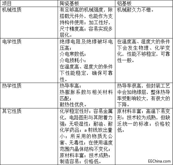 四、陶瓷基板和铝基板的性能比较