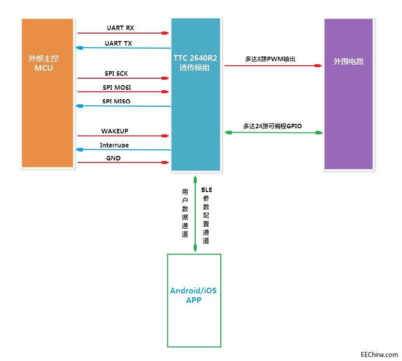 蓝牙串口模块实现了将MCU开发和蓝牙的开发工作分开,极大地减小了蓝牙产品开发难度,提高了产品开发的稳定性与开发速度,缩短了产品研发的周期,加快产品上市时间。