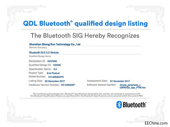 最后值得一说的是,昇润科技通过了蓝牙5认证的量产级低功耗蓝牙模块及配套SDK,可以来咨询哦!
