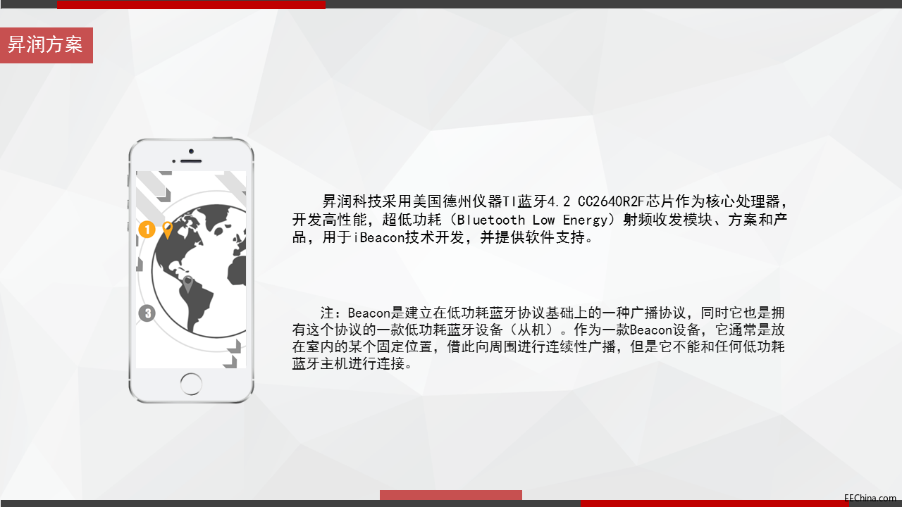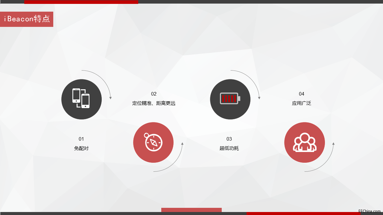 iBeacon 是 Apple 发布的技术,主要用来位置信息的推送,例如走到了某个商品前,app 可以根据 iBeacon 广播识别到了该商品绑定的 iBeacon 位置,这样 App 就可以去访问商家的服务器,获取有关该商品的详细信息(比如生产厂商,折扣信息等)。当然,iBeacon 的功能远远不止这些,借助手机的上网功能,可以设计出很多新功能新应用,让生活变得更智能化。