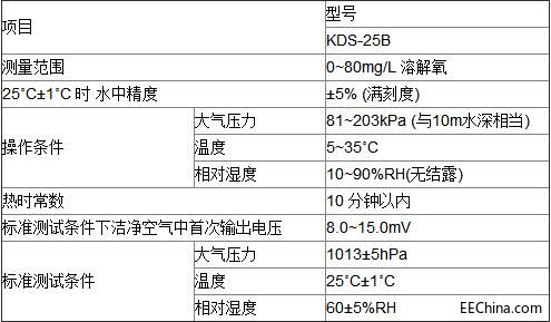 KDS-25B溶解氧传感的规格: