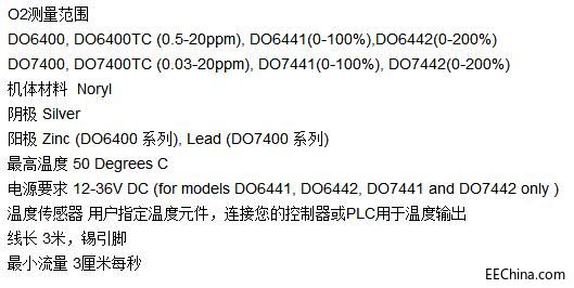 DO6400溶解氧传感器的规格: