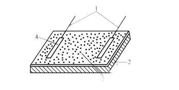 湿敏电阻式传感器主要由感湿层3、电极4和具有一定机械强度的绝缘基片2组成,如图1所示。感湿层在吸收了环境中的水分后引起两电极间电阻值的变化,这样就将相对湿度的变化转换成电阻值的变化。