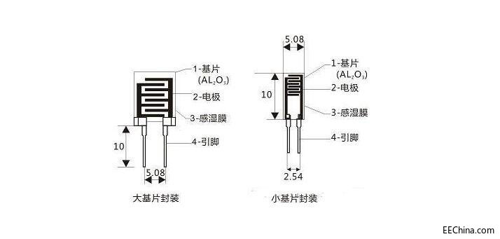 湿敏电阻的特点是在基片上覆盖一层用感湿材料制成的膜,当空气中的水蒸气吸附在感湿膜上时,元件的电阻率和电阻值都发生变化,利用这一特性即可测量湿度。湿敏电容一般是用高分子薄膜电容制成的,常用的高分子材料有聚苯乙烯、聚酰亚胺、酪酸醋酸纤维等。当环境湿度发生改变时,湿敏电容的介电常数发生变化,使其电容量也发生变化,其电容变化量与相对湿度成正比。