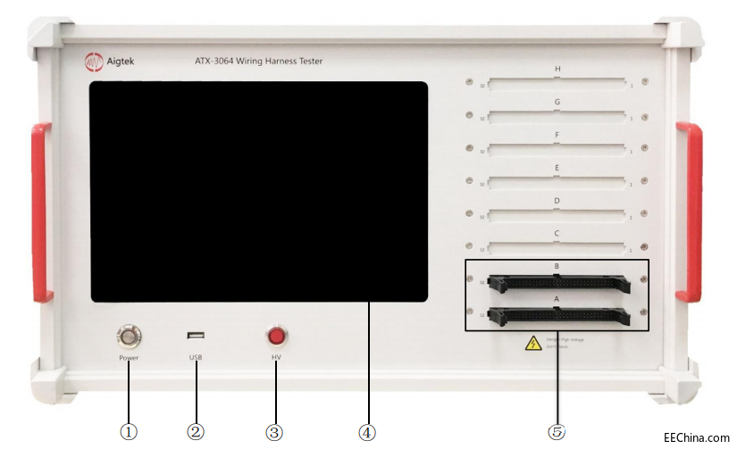 ATX-3000系列台式线束测试仪前面板介绍(如下图1)