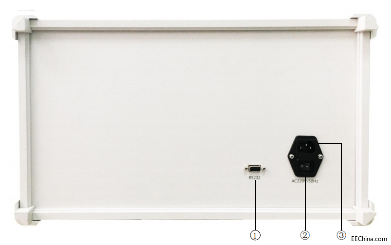 ③电源插座:AC220V 输入插座保险丝座(250V/3A)的位置。