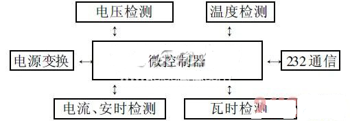 数据采集系统硬件结构如图2所示, 主要包括以下几个模块: 微控制器、电源模块、电流及安时检测模块、瓦时检测模块、电压检测模块以及通信接口电路。
