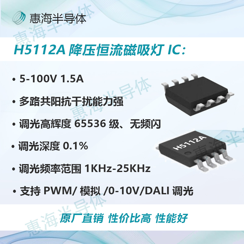 LED磁吸灯芯片恒流调光IC无频闪48V 惠海半导体H5112A 100V耐压 1.5A