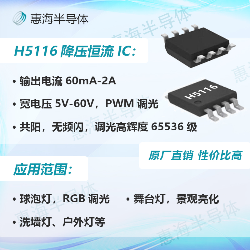 摄影补光灯芯片 直播美颜灯IC H5116惠海 PWM调光 高辉 无频闪 12V
