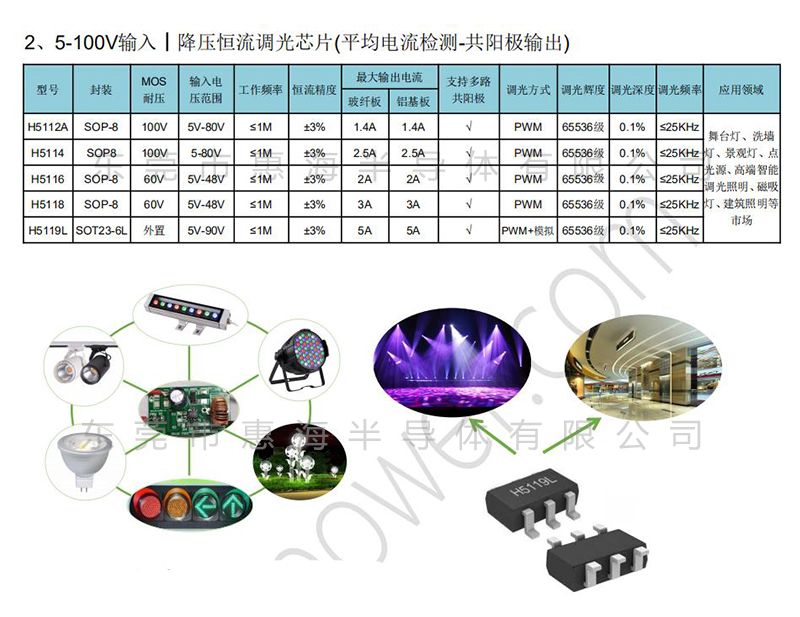 【H511系列,5-100V输入,大电流输出,PWM调光,无频闪,高辉度,共阳极】