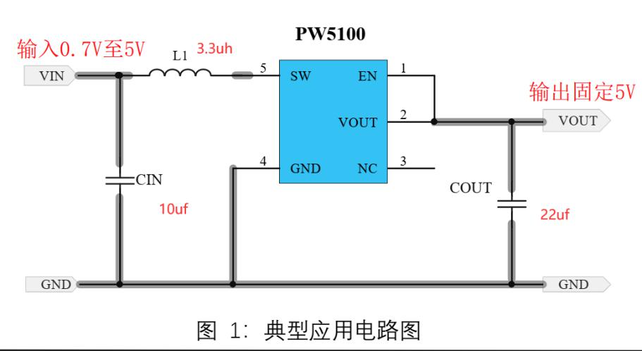 第1, PW5100升压芯片,输出电流可达500MA。高效率,低功耗10uA的。PW5100外围简洁,仅需要2个贴片电容,一个贴片电感(1uh-4.7uh)即可