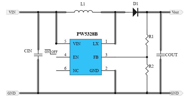 第2, PW5328B升压芯片,输出电流可达1A,异步升压,带肖特基二极管,输入电压范围很宽2V-24V之间。