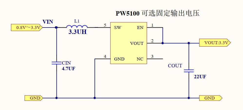 PW5100输出电压:3V,3.3V,5V固定值。