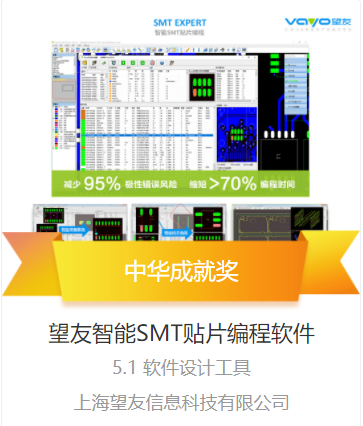 2021年4月21日,由ACT International(《SMT China表面组装技术》出版社和“一步步新技术研讨会”的主办方)主办的第15届远见奖评选活动,在NEPCON China 上公布了远见奖的获奖者并颁发了奖牌。望友“智能SMT贴片编程软件”荣获“中华成就奖”,入围了中国本土公司产品中得分最高的两家之一,被评为“为行业做出重大贡献的中国本土产品”。