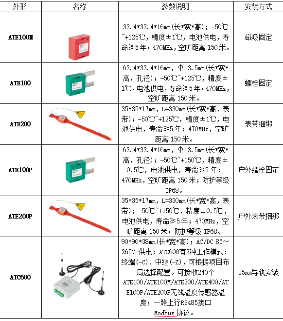 根据上述要求,故此选择安科瑞的无线测温产品如下表。