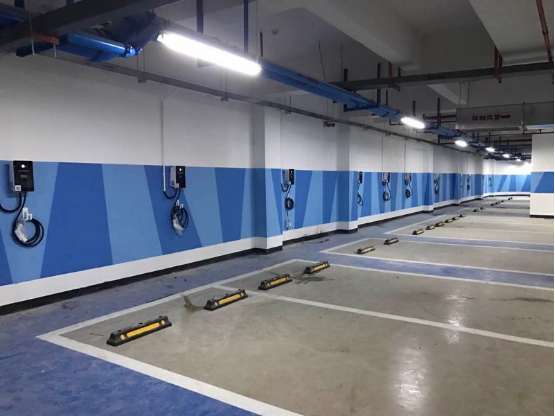 室内停车场,充电桩采用壁挂的方式