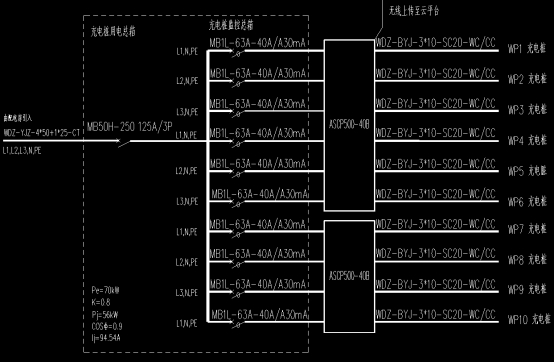 充电桩的配电箱一般在设计的时候就采用集中安装的方式,如下图所示。