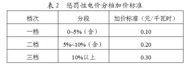 (二)惩罚性电价。对于单位产品用能量超过能耗限额标准的,企业综合能耗按当量值折算成用电量,按照超过限额能耗标准0~5%(含)、5%~10%(含)、10%以上三档执行惩罚性电价加价。惩罚性电价实行“超过限额标准全电量加价”制度。