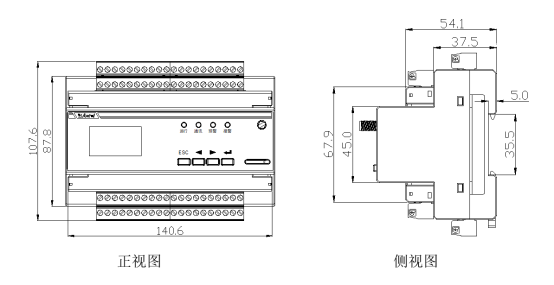 (2)剩余电流监测仪外形与安装尺寸如下图所示。(单位:mm)