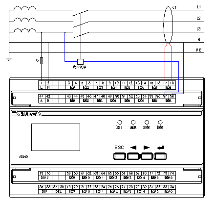2)剩余电流监测仪的 L、N 端子为仪表的辅助电源,需接交流 220V,L 端可串接 6A 的熔断器作为保护。
