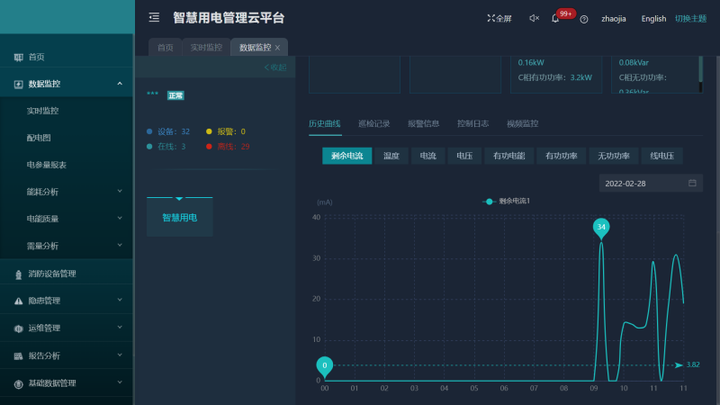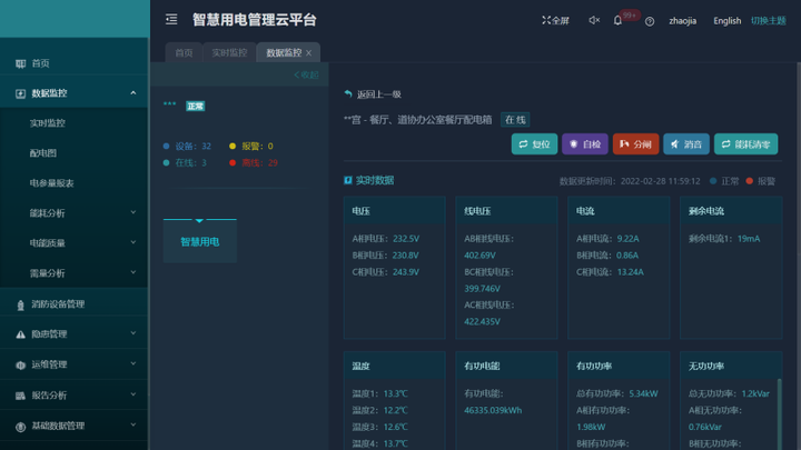 监测预警:电流过载、电压过欠压、导线温度过高、漏电电流过大
