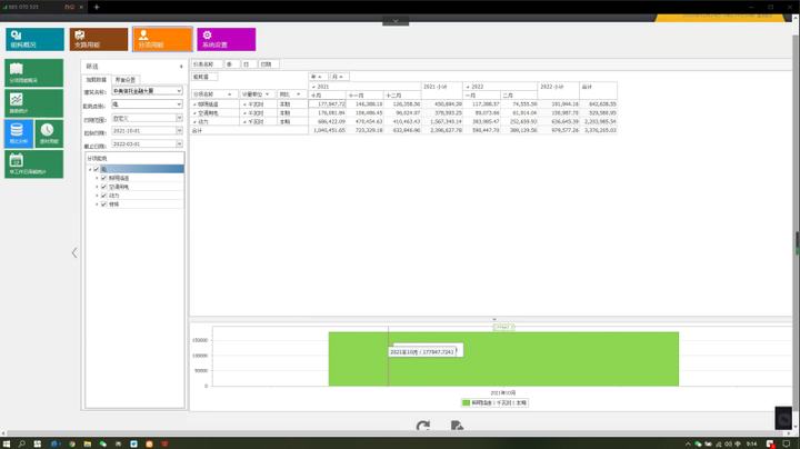 Acrel-5000能耗管理系统可以统计各支路某段时间内逐日、逐周、逐月、逐季、逐年用能。选择需要查询的支路,点击‘加载数据’查看各支路用能趋势,可根据已有的日期或者自定义时间进行查询,并可以将支路用能显示合计,以图表形式显示。