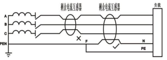 对于TN-S系统,可采用剩余电流继电器。更快速灵敏切断故障,以提高安全可靠性,此时 PE 线不得穿过互感器,N 线需要穿互感器,且不得重复接地。
