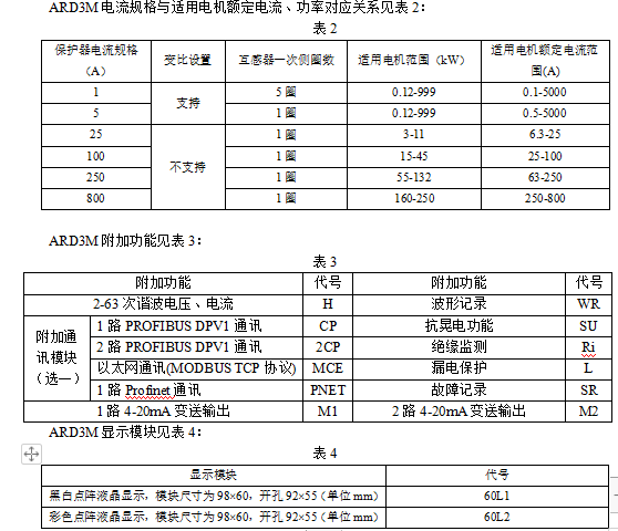 结束语:ARD3M系列智能电动机保护器,可以针对额定电压至AC660V的低压交流电动机提供完善的监测、保护和控制功能,同时可提供丰富多样的通讯模块可供选择,以满足各类工业现场的总线通讯需求。在工业生产高度规模化、自动化、可视化的今天,ARD3M智能电动机保护器是保护低压电动机及设备、保障企业生产安全稳定、实时提供后台系统所需各类参数的理想选择。