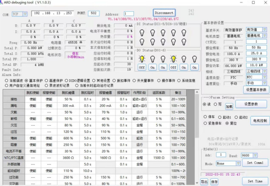 同时,还可提供客户版设置软件,可通过Modbus_TCP进行连接访问,并进行参数查看与设置。设置软件界面如下图所示: