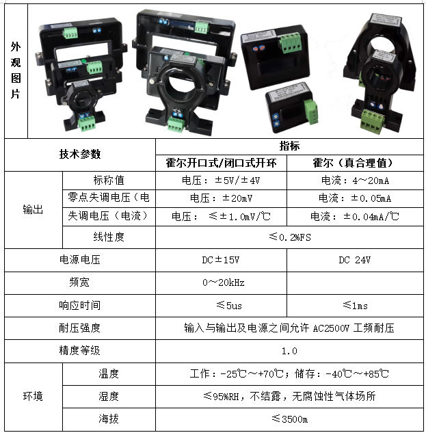 霍尔电流传感器主要适用于交流、直流、脉冲等复杂信号的隔离转换,通过霍尔效应原理使变换后的信号能够直接被AD、DSP、PLC、二次仪表等各种采集装置直接采集,广泛应用于电流监控及电池应用、逆变电源及太阳能电源管理系统、直流屏及直流马达驱动、电镀、焊接应用、变频器,UPS伺服控制等系统电流信号采集和反馈控制,具有响应时间快,电流测量范围宽精度高,过载能力强,线性好,抗干扰能力强等优点。